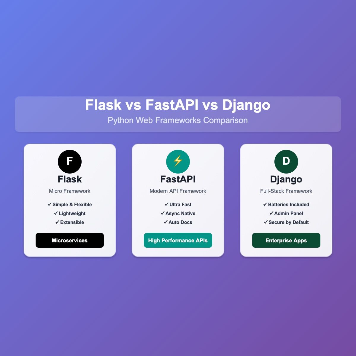 # Flask vs FastAPI vs Django: A Comprehensive Comparison ## Introduction Python offers three powerful web frameworks, each designed with different philosophies and use cases in mind. This guide will...